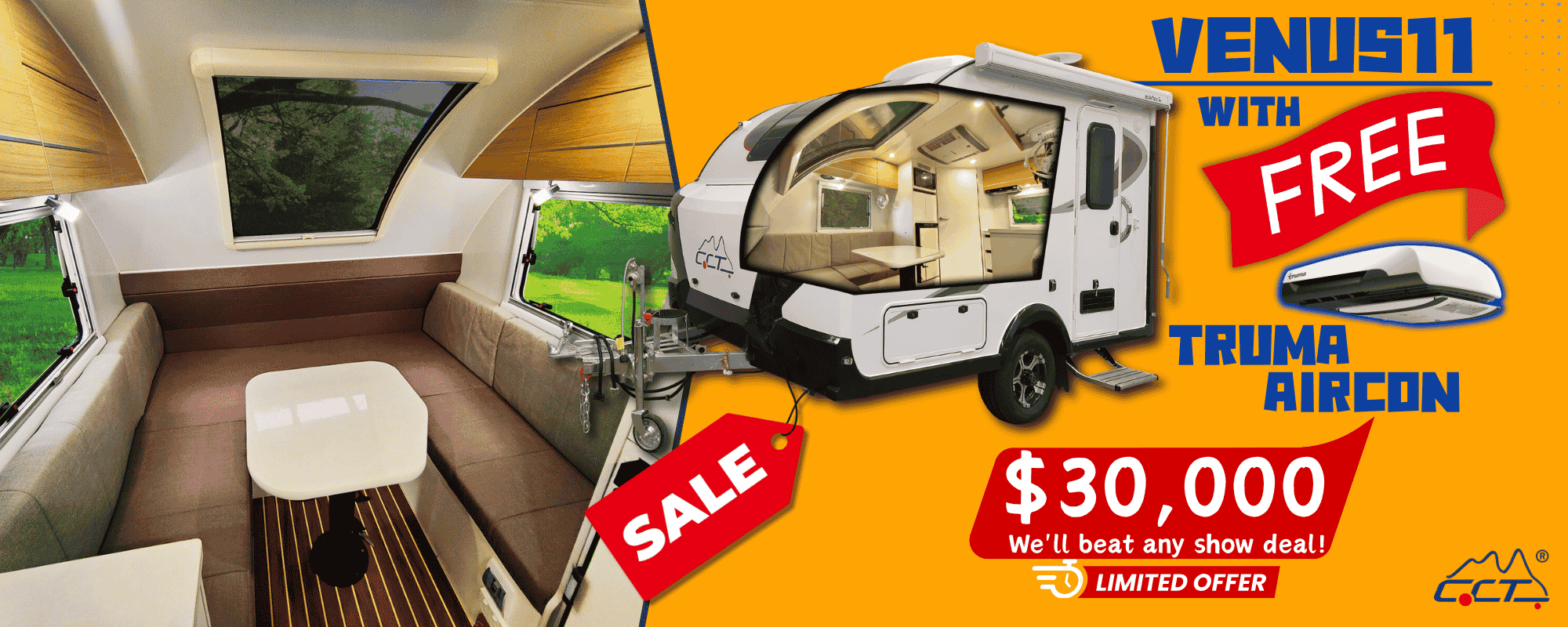 Venus 11 is designed for two adults. This lightweight compact 2-berth caravan features a modern en-suite, equipped with essential amenities. With its indoor induction cooker, sink, range hood, and air conditioning choices, it offers a homely experience on the go. Its compact size allows for easy towing and maneuverability, perfect for both short weekend escapes and extended journeys. Whether you’re a solo traveller or with a companion, the Venus11 Caravan provides all you need for a comfortable and hassle-free holiday caravan trip.