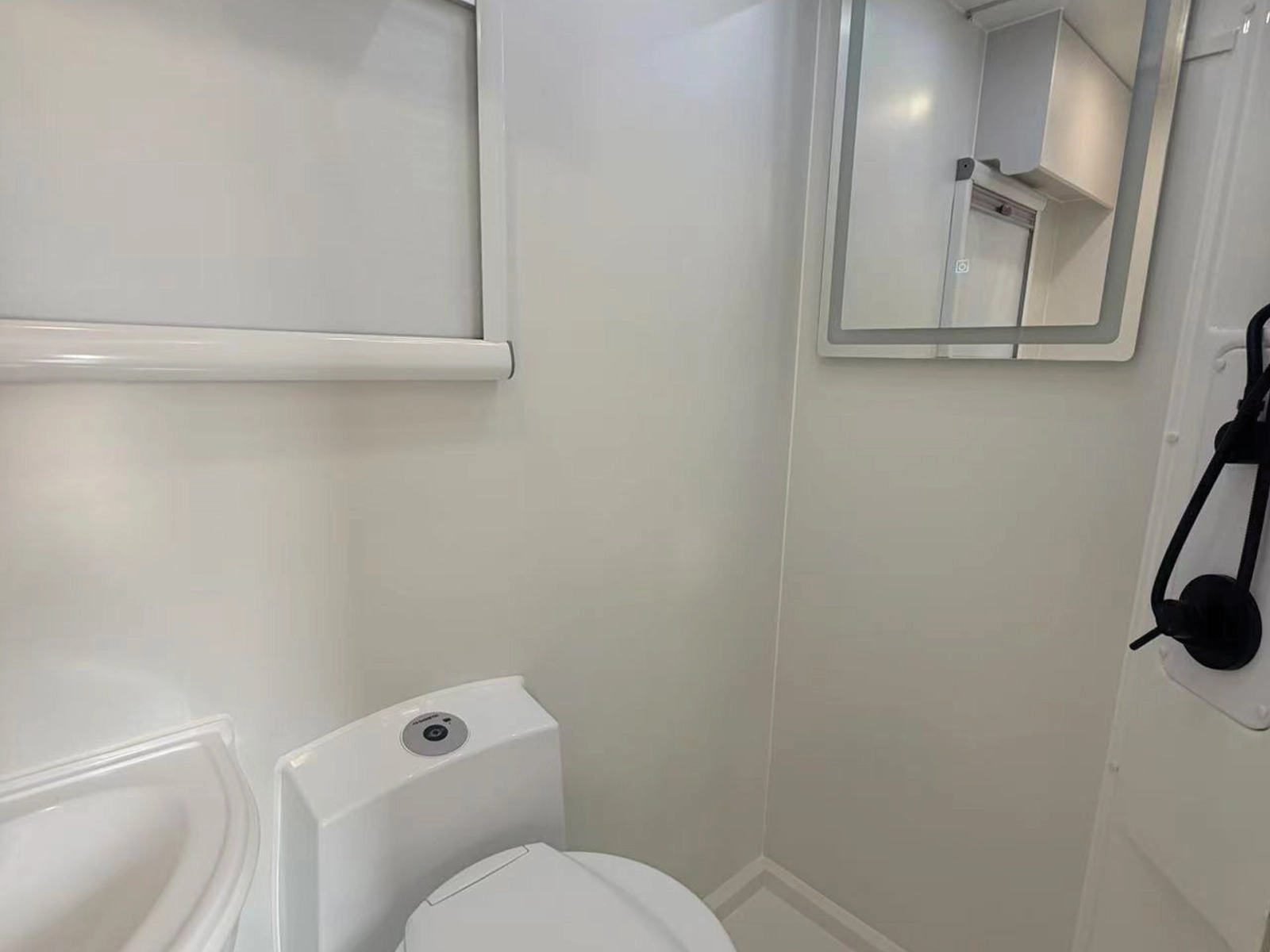 While retaining the Thetford cassette toilet, we have upgraded the shower tap set, added toilet paper holders, towel racks, and soap dispensers.