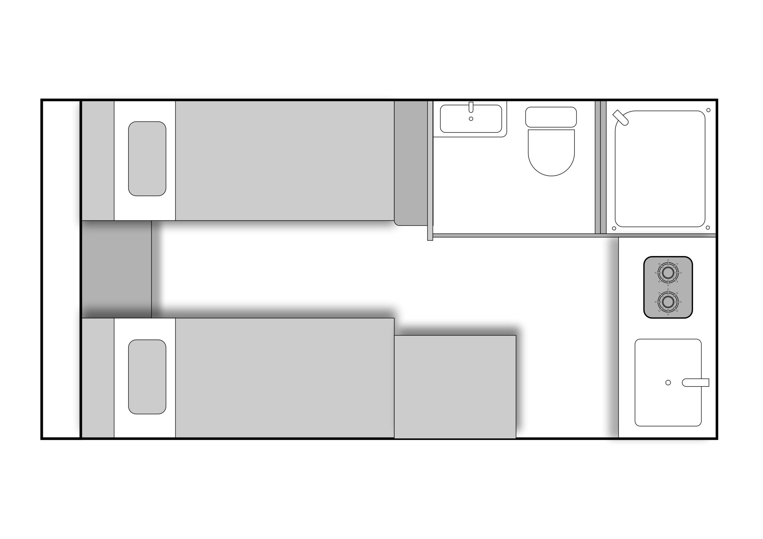 What makes it stand out in this size class is the rare twin single-bed layout, giving you a true north–south sleeping orientation in a remarkably compact footprint, ideal for travellers who prefer separate beds without compromising space.