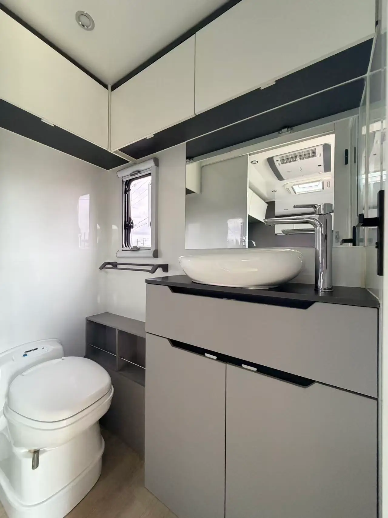 Venus 14 is designed for two adults, this Lightweight Compact 2-Berth caravan features a modern en-suite, equipped with essential amenities. With its indoor induction cooker, sink, range hood, and air conditioning choices, it offers a homely experience on the go. Its compact size allows for easy towing and maneuverability, perfect for both short weekend escapes and extended journeys. Whether you’re a solo traveler or with a companion, the Venus-14 Caravan provides all you need for a comfortable and hassle-free holiday caravan trip.